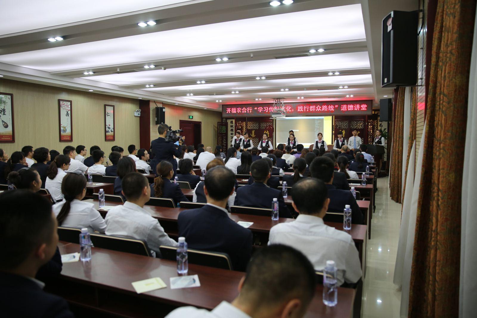 4月17日晚上7点,伴随着公益歌曲的悠扬旋律和主持人娓娓动听的讲述,开福农合行2014年第4期以“学习传统文化、践行群众路线”为主题的道德讲堂在如火如荼地进行着。省联社群众路线督导组和长沙市联社负责人等应邀参加了宣讲活动。