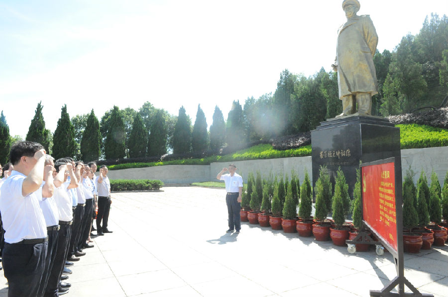在罗荣桓纪念广场,由机关支部书记孙小平带领,全体党员面向罗荣桓元帅铜像,逐字逐句、铿锵有力地重温了入党誓词。接着,全体党员参观了罗荣桓元帅生平业绩陈列馆和故居,通过图片、实物等资料,深切缅怀老一辈革命家的丰功伟绩。