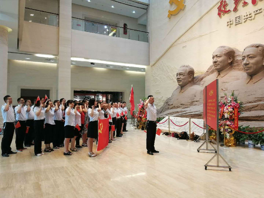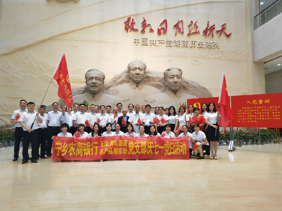 2018年7月1日,宁乡农商银行农产品加工专业支行党支部、玉潭支行党支部、新康支行党支部、青年支行党支部、喻家坳支行党支部联合开展了以“追寻先烈足迹 传承党员精神”为主题的党日活动——参观湖南省党史陈列馆,重温党的历史。