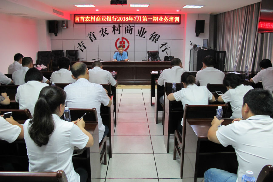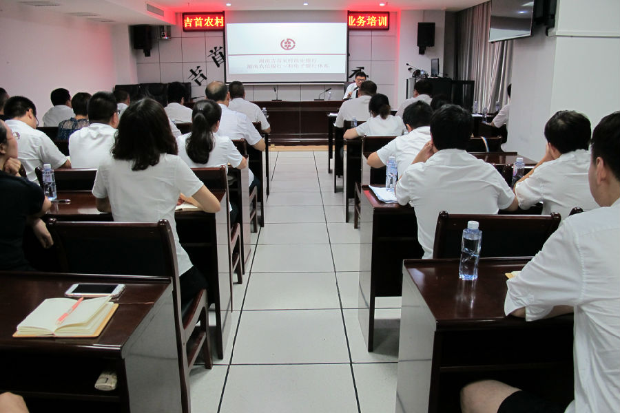 7月5日晚7点,吉首农商银行举办第一期业务培训,拉开了全员学习的序幕。第一期培训城区支行行长、副行长和委派会计在总行主会场,各乡镇支行全体员工在各自支行的分会场参与培训。