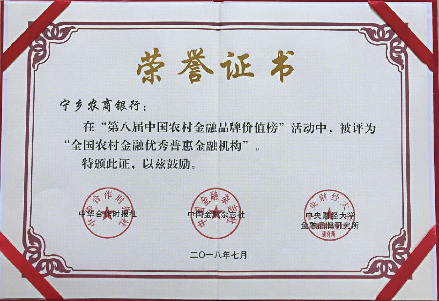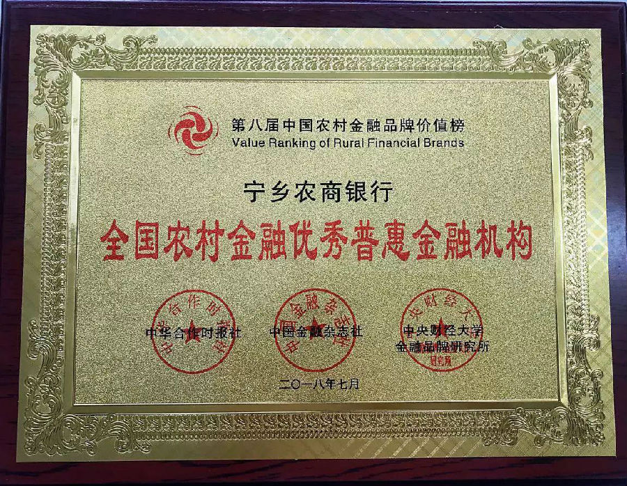 此次评选活动以“价值发掘提升竞争力”为宗旨,旨在促进银行的发展,调动彼此之间的竞争活力。这次活动由中华合作时报社、中国金融杂志社、中央财经大学金融品牌研究所发起主办,中国小额信贷联盟、农商银行发展联盟联合主办,于2018年年初正式启动,共有456家农村金融机构参与评选。在评选过程中,宁乡农商银行凭借长期践行普惠金融,引领支农支小的扎实工作获得了评委的认可,在经历过100余万次的社会公众投票以及专家评委组的三轮评审后,宁乡农商银行在众多参选机构中脱颖而出,凭借实力获得了“全国农村金融优秀普惠金融机构”这一“国字号”荣誉。