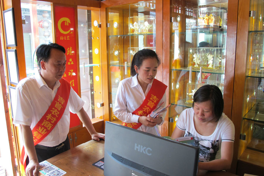 吉首农商银行员工向乾州古城商户进行金融知识宣传
