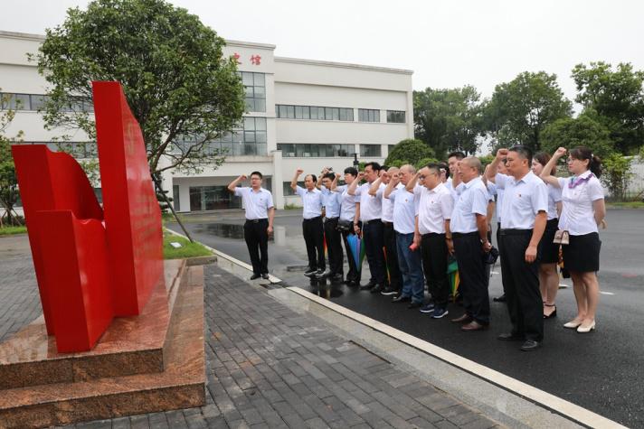 冒着淅沥的小雨,在纪念馆前坪鲜红的党旗前,全体党员举起右手、庄严宣誓。重温入党誓词,也重温入党宣誓时的庄严承诺和坚定决心。大家纷纷表示,将牢记共产党员的初心和使命,以更加饱满的热情投身各自工作中。