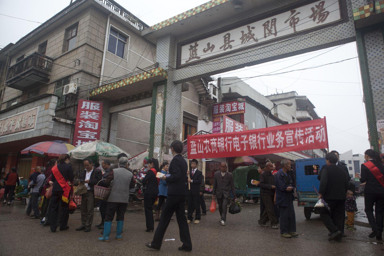 4月24日,是农历三月廿五,蓝山县城的赶集日。蓝山农商银行组织员工走上街头,集中开展庆祝全省农信社存款突破5000亿暨电子银行产品宣传活动。