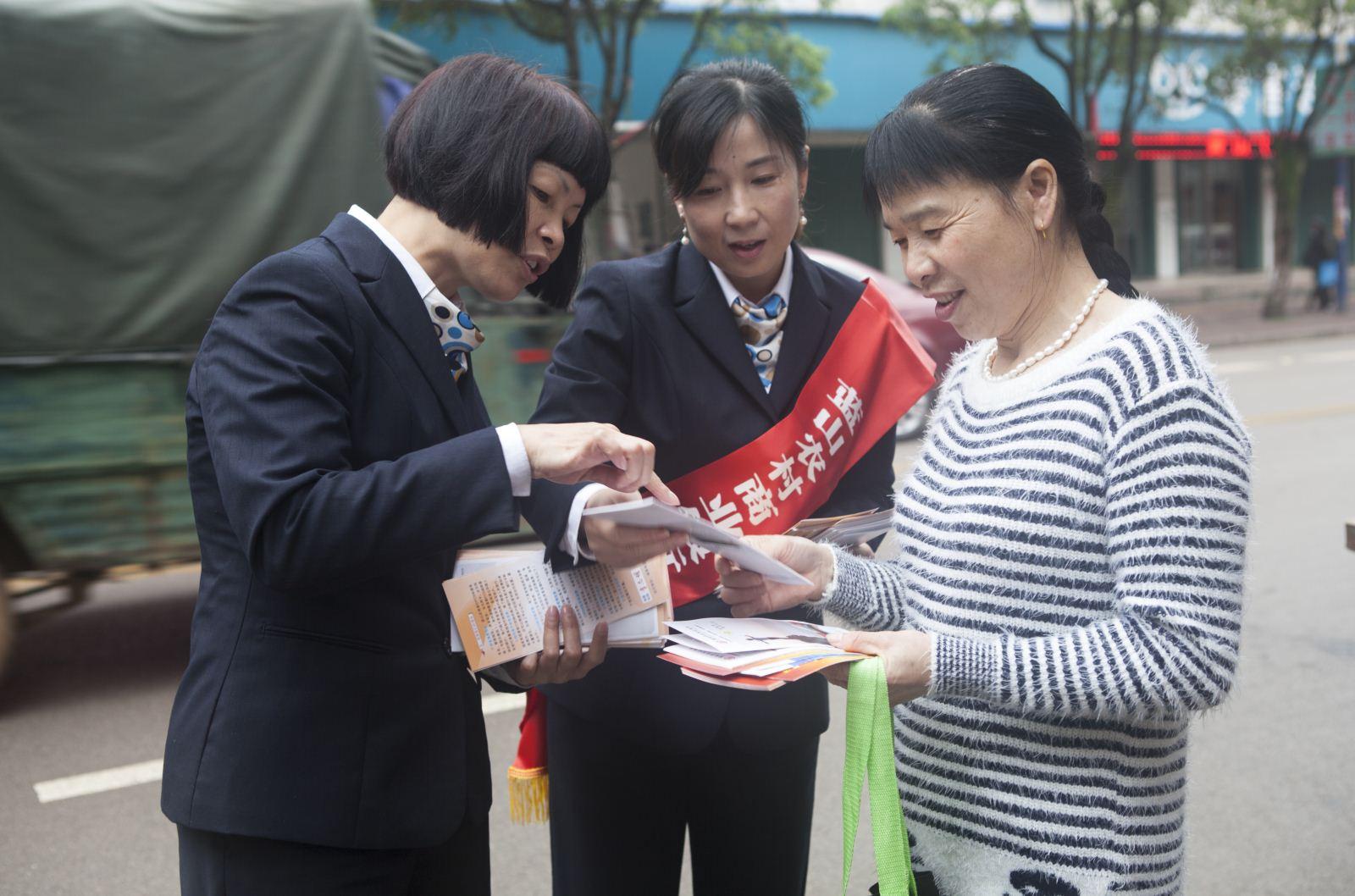 “赵大姐,您可以用我们的手机银行呀!我们农商行的手机银行操作简单,跨行、跨地区转账都不用手续费,到账又快,可方便了!昨天晚上我们的彭行长就用手机银行给她在外地上学的女儿转了600块生活费过去呢!”蓝山农商银行的宣传员热情地向她解释。
