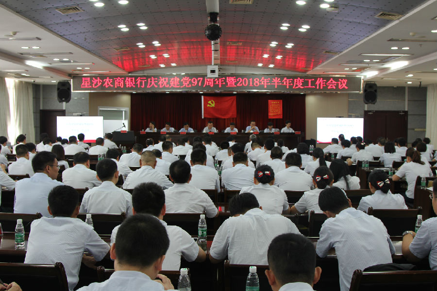 7月19日上午,星沙农商银行组织召开了庆祝建党97周年暨2018年半年度工作会议,总行领导班子成员、正副协理员、部室经理、支行、村行正副行长、会计、客户经理、机关全体员工和稽核大队工作人员、先进党务工作者、优秀共产党员、新党员共200余人参与了本次会议,会议由行长何伟主持。