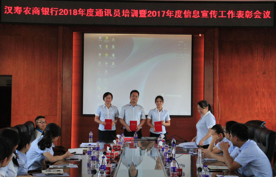 会上宣读了《湖南汉寿农村商业银行股份有限公司关于2017年度信息宣传情况的通报》,并对2017年度信息调研优胜集体、优秀通讯员进行表彰。