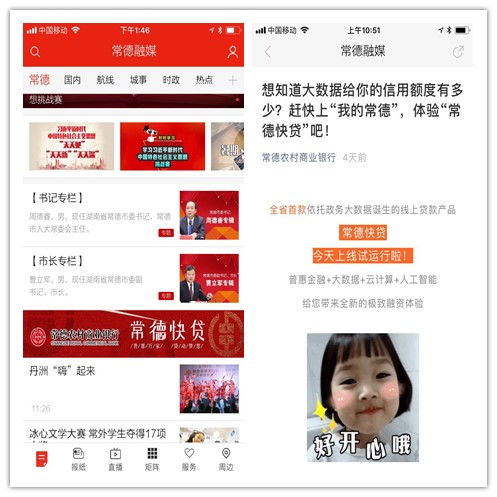 “常徳融媒”APP作为全市参与挑战赛答题的唯一入口,成为众多参赛学员手机下载的热点。常德农商银行通过APP开机第1页和“新手学员”注册页面显示“常德农商银行邀你来挑战”加油语为比赛“呐喊助威”;通过APP开机第2页宣传“常德快贷” 6大优势——不限职业、无需抵押、月利率低至5.4‰、最快3分钟、最高50万、随借随还,并精心设计“热点”通栏广告,滚动播放“常德快贷”画面,用户只要点击此画面便能链接到“常德快贷”产品介绍,及时掌握这款产品的动态;在学员必用的“答题攻略专题”二维码页面嵌入农商行LOGO,进一步加深了全市广大党员干部群众对农商行的印象。