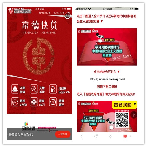常德融媒开机第2页”常德快贷“、“答题攻略”二维码画面