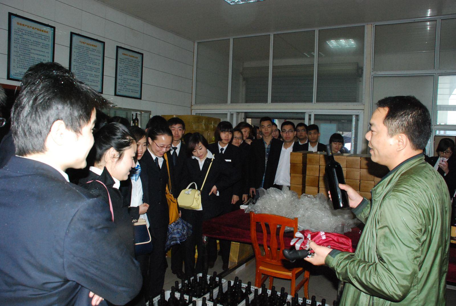 企业技术人员向员工讲解葡萄酒制作过程