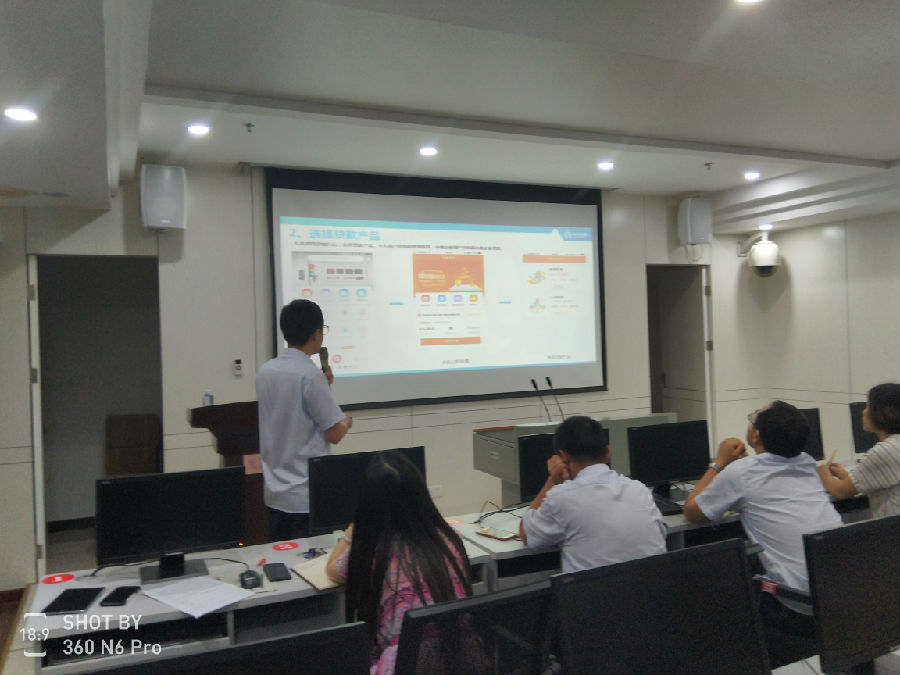 重点培训。针对员工存在业务难点咨询频繁、系统操作流程不清晰的情况,重点培训了 “常德快贷”两个课件。一是“常德快贷” 客户端(APP)业务:重点学习客户通过手机端申请“常德快贷”的简易流程,即6个步骤:安装“我的常德”APP,注册登录并实名认证,进入“常德快贷”业务;选择贷款用途,提交贷款申请;系统自动审批为主,客户经理线下调查为辅;确认额度和利率,人脸识别签订合同;手机银行用款,系统自动放款;手机银行还款,实时恢复额度。二是“常德快贷” 客户经理(PAD)业务:重点学习客户经理在接到客户申请后在PAD端的处理流程以及操作注意事项。针对“常德快贷”移动营销管理平台的常用菜单“客户管理”、“贷后管理”、“统计分析”、“催收管理”等,内训师朱伟用PPT演示,逐个菜单进行操作指导,参训员工使用PAD同步练习。