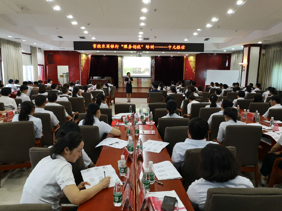 为进一步推动全行优质文明服务工作,强化行业服务意识,激发服务潜能,创新服务手段,规范服务行为,8月20日至25日,常德农商银行邀请中元银信公司在该行八楼会议室举办“服务创优”培训班。据悉,此次培训分三批开展,每批安排两天课程,培训对象为柜员、主管、大堂经理、分理处主任、委派会计等共计337人。