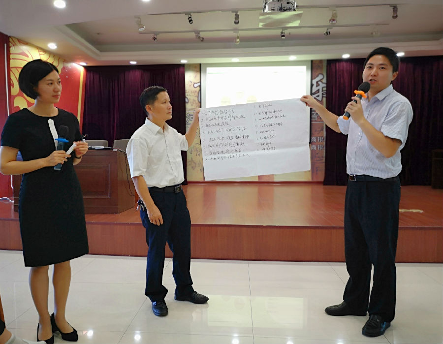 中元银信公司的培训师李老师在《银行员工服务礼仪与沟通技巧》课程中,运用“课堂学习、讨论交流、实践反思”三步走策略,从银行服务规范、职业化修炼、投诉抱怨处理三个方面展开:为学员们解析柜面服务七步曲、大堂经理接待礼仪,带领大家实战演练,规范服务用语,达到工作状态的标准化、规范化、制度化;在《员工阳光心态与客户投诉应急处理》课中导入“职业化”的概念,让员工树立敬业精神,学会疏解工作压力,塑造阳光心态;通过对客户投诉心理的分析,帮助大家正确处理客户投诉,并掌握六类典型客户的应对技巧,在提高学员个人能力的同时也帮助银行提高行业竞争力。