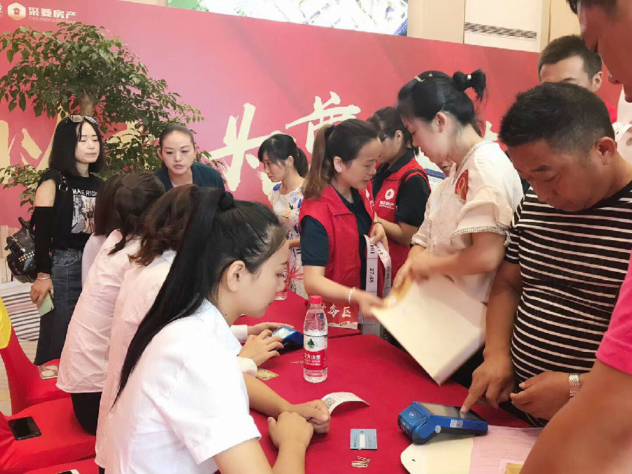8月18日,采菱房地产开发有限责任公司开发的采菱红星美凯龙家居生活广场正式开盘发售。一期堆金街推出203间商铺,于当天火热发售。开盘消息得到了总行领导及支行行长的高度重视,立即派财务人员数名,提供POS机等机具设备,为现场客户提供金融服务。活动当天售出108套房屋,当日认筹金刷卡到账约560万元,剩余的商铺也在持续火热的销售中。活动中,青林支行安排了客户经理对按揭贷款进行了现场辅导,提高楼盘营销人员及客户对农商行贷款的了解程度,加快贷款投放进度。