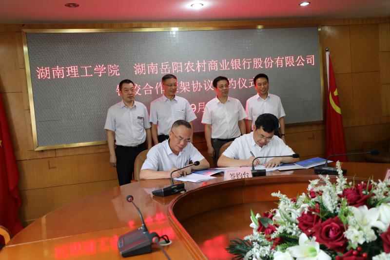 9月10日下午,岳阳农商银行与湖南理工学院成功举行银校合作框架协议签约仪式。岳阳农商银行董事长黄亚平、监事长宋元喜、副行长杨立,湖南理工学院党委书记李明、校长卢先明、副校长张国云等领导出席签约仪式。