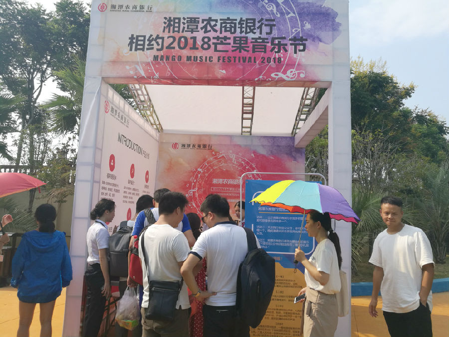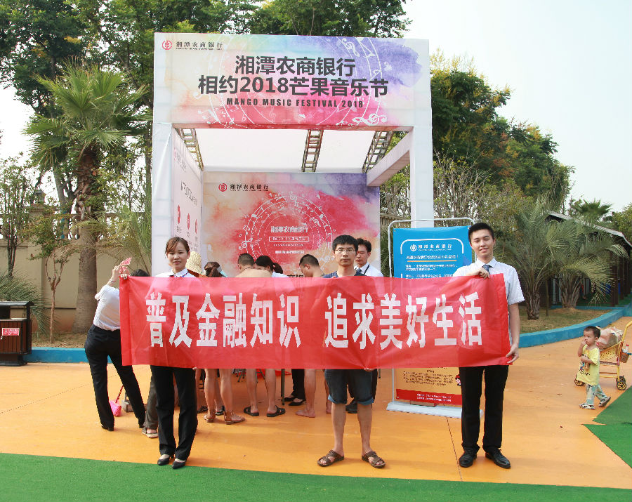 九月初秋,天高云淡,一年一度的芒果音乐节在昭山城市海景水上乐园再次唱响,吸引了全国数万人参加,湘潭农商银行充分利用此次机会,9月15-16日在现场开展普及金融知识宣传活动。为了做好此次宣传,我行准备了7种宣传手册、制作了横幅、设计了展台、挑选了8名优秀的宣讲人员,并采购了小礼品。