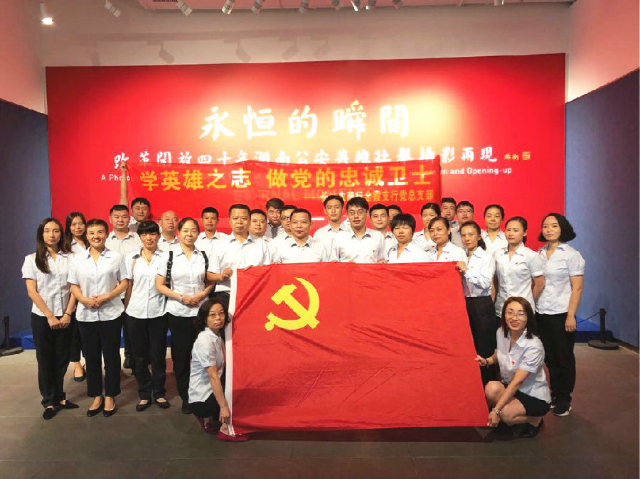 湖湘之地的改革发展渗透了各行各业的忠诚和辛劳,而公安民警的鲜血和汗水为社会的有序运行和百姓的安康幸福铸就了金色盾牌。为瞻仰临危不惧、打击犯罪的英雄壮举,学习和传承艰苦奋斗、舍己为人的崇高精神,当好党和人民的金融卫士,近日,长沙农商银行金霞支行党总支组织观看了“永恒的瞬间——改革开放40周年湖南公安英雄壮举”摄影展。