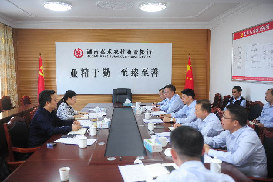 下午,高仕贤主任一行来到嘉禾农商银行,与我行班子成员、办公室、信贷管理部、业务发展部、风险管理部负责人进行座谈,听取了三季度目标任务完成情况、目前工作中存在的问题和困难及四季度工作安排等情况汇报。