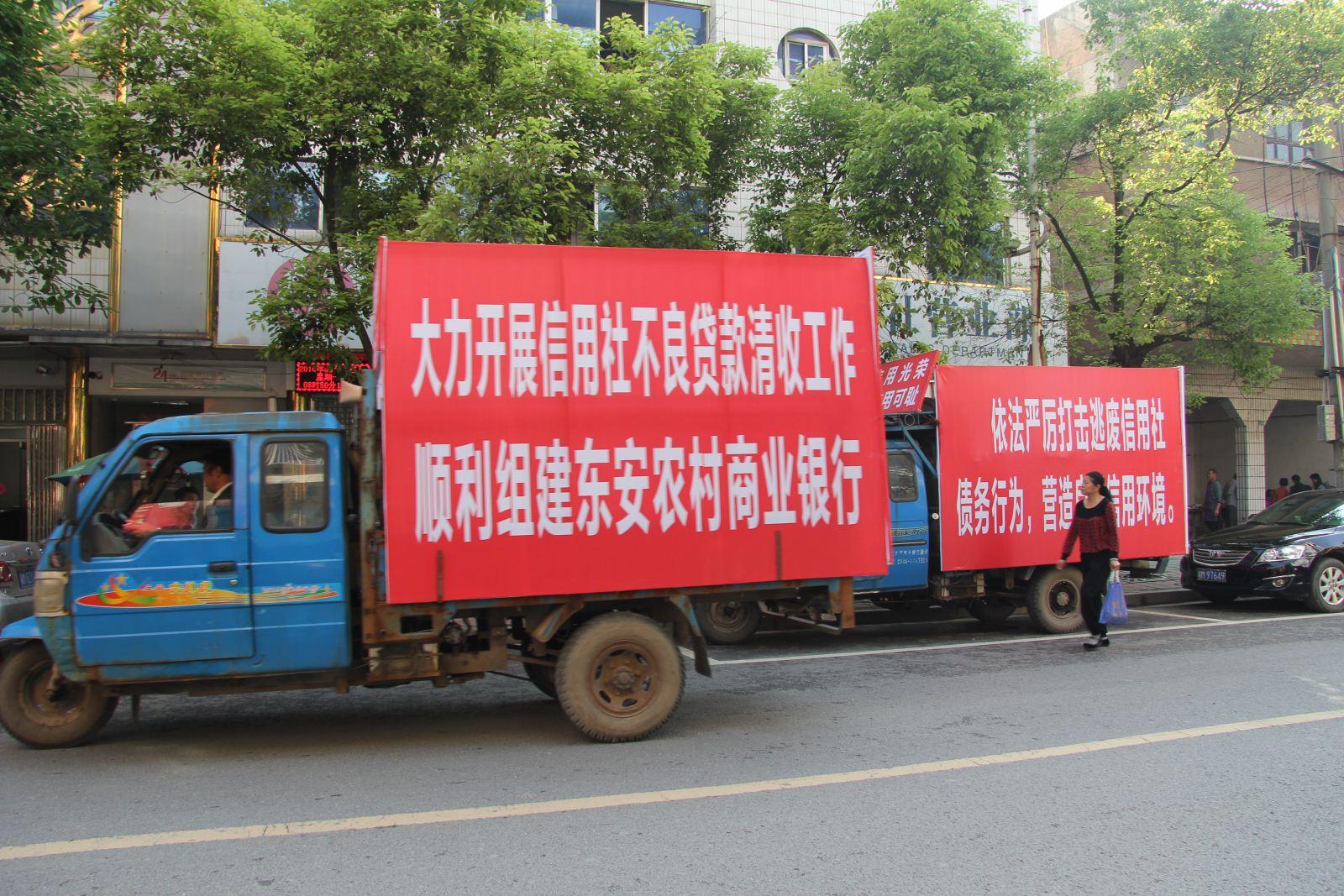 为提高清收工作影响力,掀起清收不良贷款高潮,东安联社安排了10辆宣传车,深入全县18个乡镇、503个行政村,开展流动巡回宣传,广泛张贴清收标语,及时将不良贷款清收的相关政策传达给当地群众,为清收工作的顺利开展奠定基础。