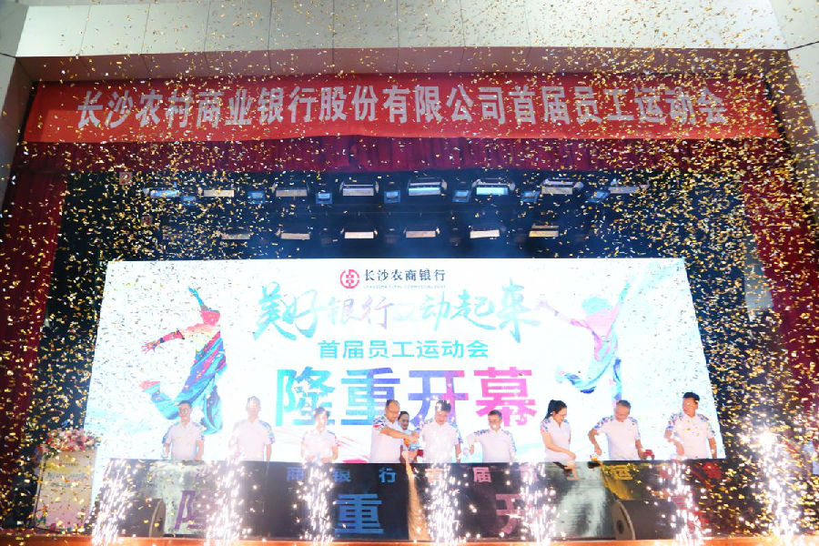 长沙农商银行党委副书记、行长陆家兴为运动会致开幕词,号召全体员工动起来,用“我运动,我健康”的理念,锻炼体能,以强健的体魄、良好的精神风貌服务于社会,服务于大众;用“我运动,我快乐”理念,承载着友谊与团结、和平与公平、关爱与尊重、协作与互助的精神内涵,倡导健康的生活方式,实现快乐工作、快乐生活。