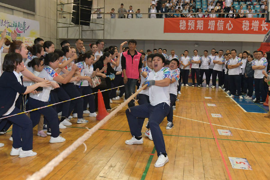 参赛队伍充分发扬团结协作精神,既有力量的角逐,也有智慧的较量,他们用高昂的激情和灿烂的笑容展示了农商人团结协作、志存高远、奋发向上的精神风貌。