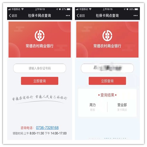 据悉,以往由于代理发放涉及的行政区域广、范围大、客户数量多,参保人领卡经常在人社局、银行网点间来回奔波,各营业网点为客户查询社保卡发卡网点的工作量越来越大,各级的查询电话也是应接不暇。今年以来,为方便参保人查询信息、领取社保卡,常德农商银行电子银行部主动作为、积极创新服务方式,联系科技公司开发了社保卡领卡网点查询二维码,并在人社局和辖内营业网点设立社保卡发卡网点查询二维码标牌,将全行库存卡及新增卡信息全部录入数据库,参保人只需手机扫一扫二维码,输入身份证号码,就能显示其具体领卡的营业网点,然后直接携带身份证到相应的网点领卡、激活。查询二维码的推出大大节省了人力,进一步促进“信息多跑路、百姓少跑腿”,实现社保卡发卡网点的精准查询和参保人领卡“最多跑一次”,解决了社保卡在网点的积压和延后激活的问题,极大提高了网点的服务能力和工作效率。