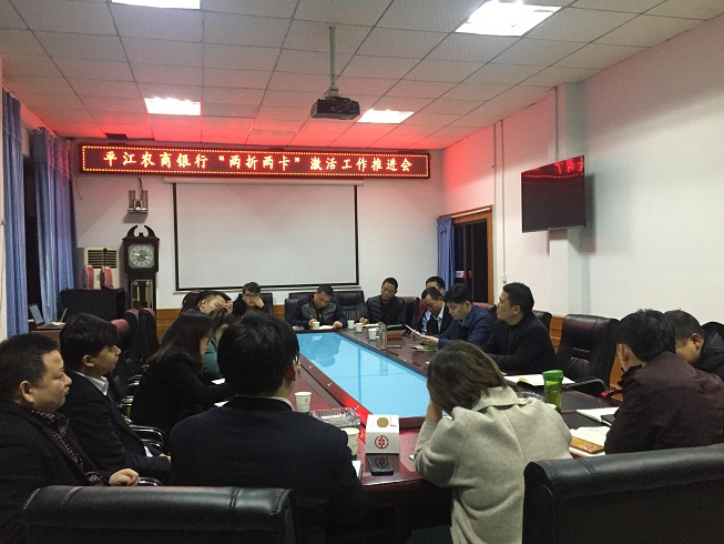 11月19日晚,平江农商银行在总行五楼小会议室召开“两卡两折”激活工作推进会。总行副行长、支付结算部经理、八家任务支行行长和委派会计共18人参加会议,会议由党委委员、副行长张卓主持。