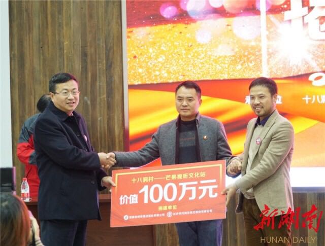 在此次挂牌仪式中,该行与合作单位联合向十八洞村颁发了捐赠牌。每个“芒果视听文化站”投入价值100万的物资,配置若干电视机和影碟机以及3000套以上的音像制品,全开放供村民免费使用,以此加快深度贫困地区的文化建设,丰富村民文化娱乐生活,让文化的“软资源”变成脱贫致富、乡村振兴“硬实力”。