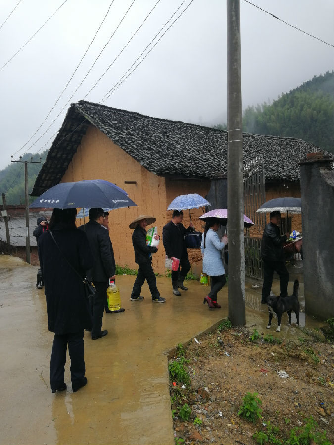 11月20日,桂阳农商银行董事长、监事长冒雨深入该县贫困山区6户结对帮扶贫困户家中,带去粮油用品进行慰问,并为贫困户脱贫出谋划策。