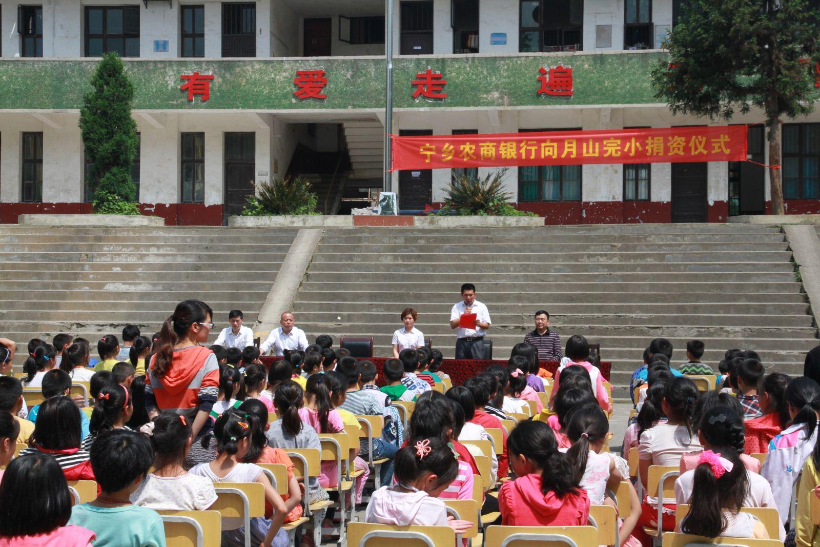 月山完小的前身系开国上将甘泗淇的母校。学校几经异址重建,目前的校区始建于1976年,是月山片区唯一的一所农村寄宿制学校。学校共有10个班级、353名学生。由于地处偏远,大多数教师数十年扎根山区,19名教师中教龄超过20年的有12名,最长的达38年。2010年以来,学校定点招聘了4名大学生年轻教师,并在社会各界的帮助下建设了电脑室、仪器室等,配备了一定的体育器材和7千余册图书。但尽管如此,学校条件依然艰苦,还缺乏必要的音乐室、美术室、语音室以及教师周转房等,目前已经动工建设的学生公寓楼和学生餐厅两大项目还存在建设资金不足的问题。了解到这一情况后,宁乡农商银行决定向月山完小捐资10万元,为改善学校办学条件出一份力,为边远山区的孩子们提供一个学习成长的良好环境。