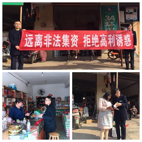 为严厉打击非法集资活动,维护正常的金融秩序和社会稳定,保护存款人和消费者的切身利益,湘潭农商银行姜畲支行积极响应总行号召,利用条幅、展板、电子显示屏、宣传册等形式,向周边客户和群众深入开展远离非法集资,拒绝高利诱惑的宣传活动。在此次的活动中,进村组宣传3次,参与人群140余人;发放宣传手册140余份,悬挂宣传条幅2条。