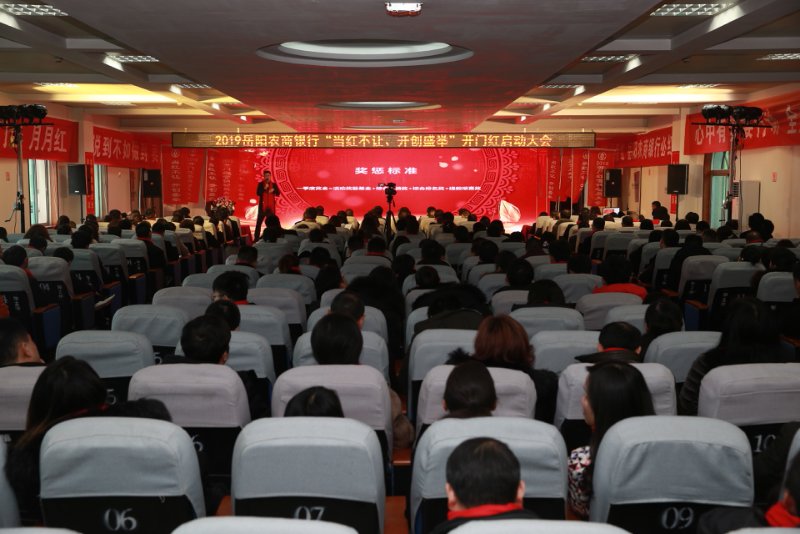 战旗猎猎,战鼓擂擂。1月2日,岳阳农商银行召开2019“当红不让,开创盛举”开门红启动大会。总行班子成员,机关全体员工,各支行正副行长、委派会计、客户经理,资产管理中心正副队长,内训师等共计300余人参加了会议。
