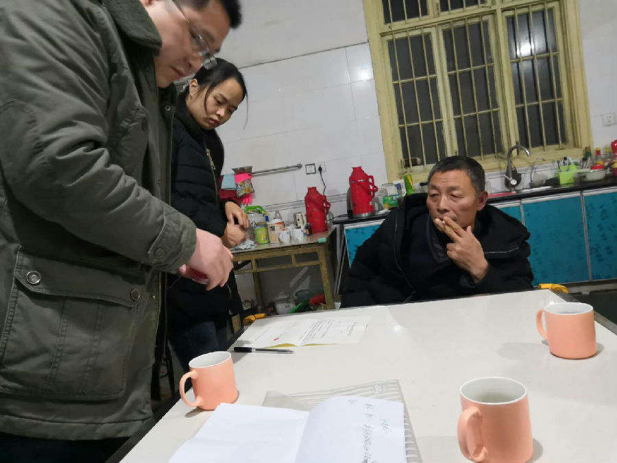 1月10日晚上,在得知其家人要回家,该部全员出动,上门蹲守,就连离预产期仅20天的副总陈艳也坚持与大家一起行动。功夫不负有心人,10点30分,工作人员终于见到庞某的家人。通过讲清利害关系、道明严重后果等方式与其家人进行沟通,引导、督促偿还借款。当晚其妻子签收逾期贷款催收通知书,其父亲签订承担连带偿还责任的承诺书,并答应次日到网点进一步商讨化解事宜。