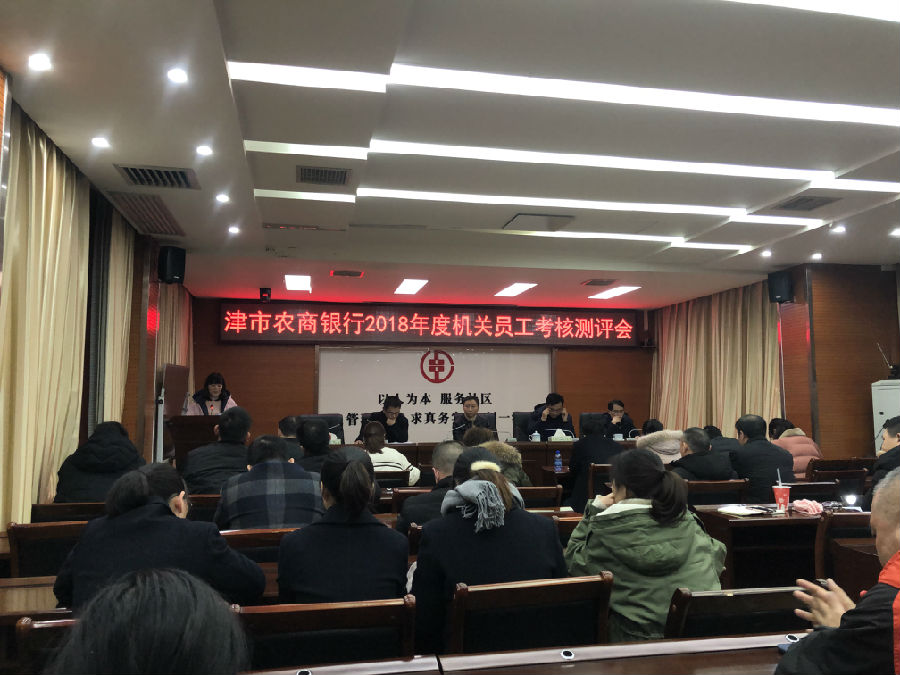 为客观准确评价员工2018年工作表现,激励员工爱岗敬业、踏实履职,进一步提升机关部室管理水平,近日,津市农商银行组织开展机关工作人员年度述职测评工作,该行班子成员、机关全体员工、支行负责人共50余人参加。