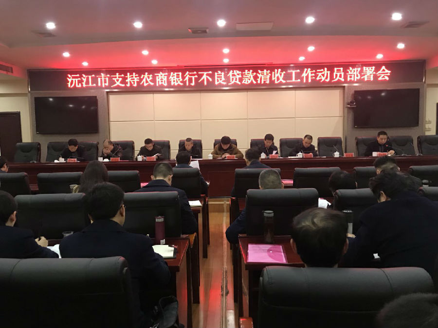 1月23日,在沅江市政府会议厅,召开了市政府清收农商银行不良贷款动员部署会议,会议由沅江市人民政府副市长高应良主持,市委常委、常务副市长罗必胜,市纪委、组织部、宣传部等相关部门主要领导,各镇(场、办事处)主要负责人以及沅江农商银行党委班子成员、部室经理及支行行长参加,拉开了新一轮全市清收农商银行不良贷款的序幕。