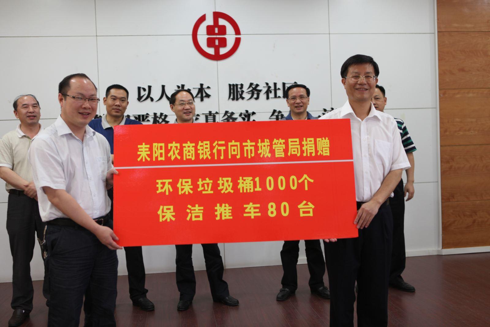 6月6日,在农商银行成立一周年之际,耒阳农商银行隆重举行 “爱我耒阳”公益环卫设备捐赠仪式。耒阳市委、市政府及相关职能部门主要负责人应邀出席。