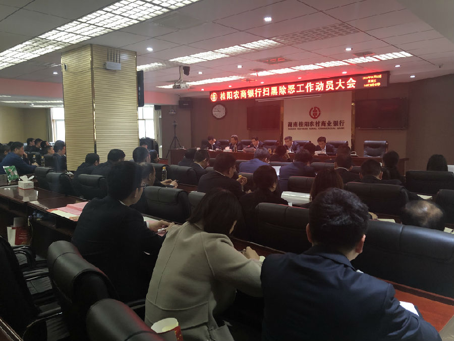 4月3日,桂阳农商银行召开扫黑除恶工作动员大会。总行领导、各部室负责人、各支行行长参加会议。会议由党委书记、董事长谢华南主持。
