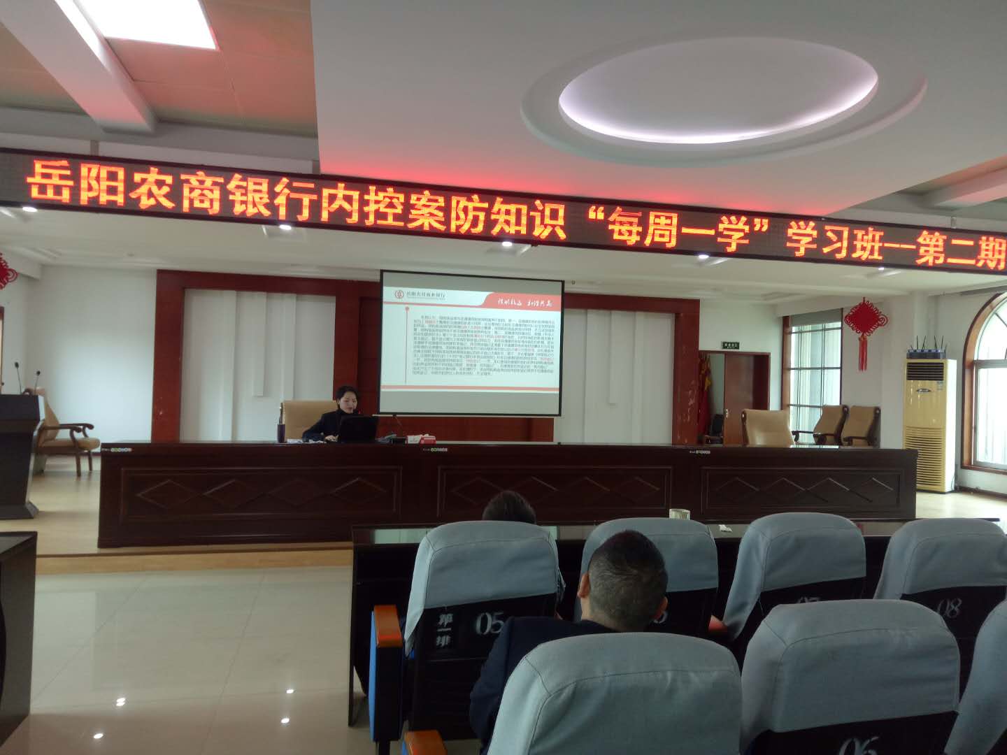 为建设学习型单位、提高内控案防水平,按照省联社岳阳办事处内控优化的相关要求,从3月份开始,岳阳农商银行组织全辖员工开展内控安防知识“每周一学”学习活动,直至12月份结束。