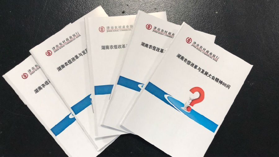 三是紧抓要点学习巩固。为切实保证会议内容要点及精髓部分准确无误的传达,该行对内编印湖南农信改革与发展大会精神88问手册。以问答的形式将全省农信系统改革与发展大会提出的战略目标、战略定力、战略转型、战略工程及高质量发展工作规划、指标体系等重要精髓浓缩成手册,让全体员工熟知、熟记,对系统发展方向和目标了然于胸,随时随地指导当前工作。
