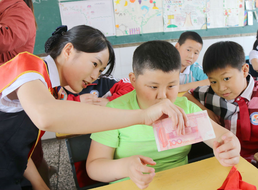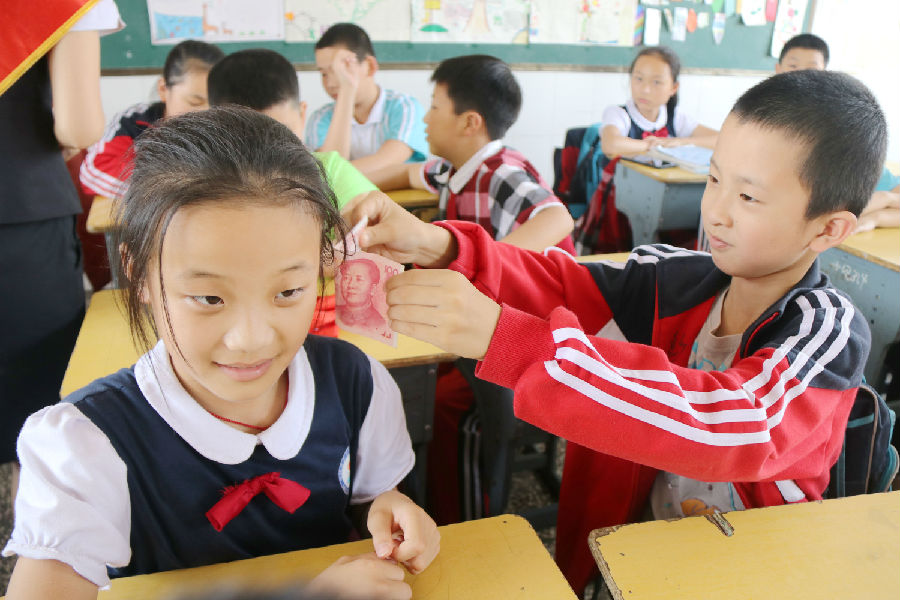 为了充分激发学生们的学习兴趣,该行宣讲员别出心裁,以小魔术为切入点,勾起孩子们的好奇心,通过寓教于乐的方式带动他们积极参与到课程中来。首先,宣讲员让同学们进行“钱从哪里来”的思考,使他们了解了货币的发展历程,认识到钱是要通过智力与体力的付出而得来;随后,宣讲员提出“钱能让我们做些什么”的问题,让每个同学自己参与规划,学习如何合理做好开支预算,管好用好自己的钱;在课程的末尾,宣讲员向同学们进行了人民币相关知识普及,现场向同学们演示“看、听、摸、测”的鉴别方法,用真假人民币实物让孩子们一一进行了亲身体验,教会他们通过识别金属丝、立体人像等方法快速鉴别人民币真伪。同学们一个个变身为“防假反假小达人”,积极与宣讲员们互动。最后,宣讲员还为课堂上积极参与互动的同学们送上可爱的储蓄罐作为奖励,提升他们对财富的规划意识、管理能力以及合理使用的理念。
