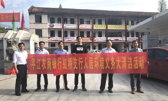近日,平江农商银行虹桥支行组织党员先锋队在集镇街道沿线开展“义务清洁”主题党日活动,进一步改善了农村人居环境,丰富了主题党日活动载体。