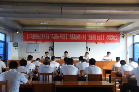 为深入学习贯彻习近平总书记的主题教育重要讲话精神和省联社、永州办事处关于主体教育工作重要会议及文件精神,自觉落实省委、省联社动员大会要求,对全行开展主题教育活动进行安排部署,7月10日上午,新田农商银行在五楼会议室召开“不忘初心、牢记使命”主题教育动员大会。党委书记、董事长陈朝辉主持会议,党委班子成员、各部室负责人、支行行长参加会议。