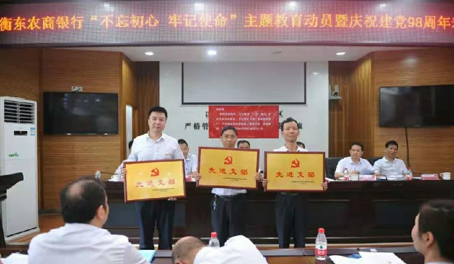 7月5日,衡东农商银行隆重讲话开 “不忘初心、牢记使命”主题教育动员暨庆祝建党98周年表彰大会。党委书记、董事长李来华强调,要把思想和行动统一到省联社、衡阳办事处关于开展主题教育的决策部署上来,要以更高的政治站位、更强的政治自觉,把责任扛在肩上,把工作抓在手上,把措施落到实处,确保主题教育扎实有力开展。党委班子、副协理员、各党支部书记及全体党员共计117人参加会议。