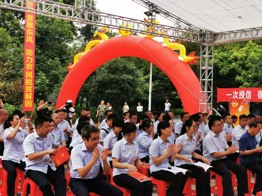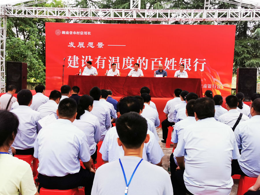 7月16日,古丈农商银行红石林镇党建共创金融普惠在该镇龙天坪村拉开帷幕,这是该行认真贯彻落实省联社“不忘初心、牢记使命”主题教育会议精神、深化干部作风建设的重要抓手,也是该行建设有温度的百姓银行主要内容之一。启动仪式由党委副书记、行长张华主持,省联社湘西州办事处党组成员、副主任、纪检组长何平,古丈县县委常委、常务副县长胡丕宇,县委宣传部、镇党委政府主要领导、驻村扶贫后盾单位领导出席启动仪式,村两委及村组长及村民代表、农商银行董事、监事代表、机关部室主要负责人、各支行长、客户经理80余人参加启动仪式。