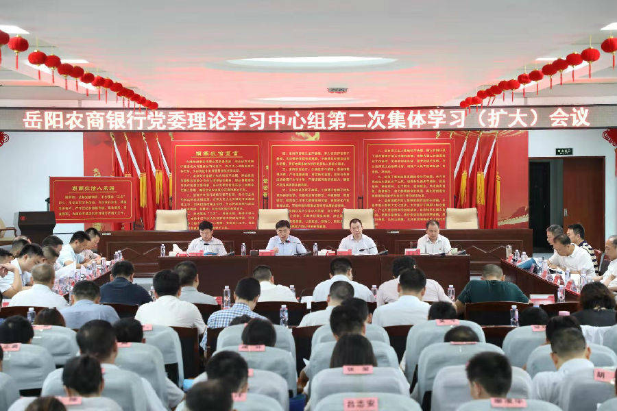 近日,岳阳农商银行在七楼会议室组织召开党委理论学习中心组第二次集体学习(扩大)会议,该行党委班子,机关全体员工、各支行正副行长共120余人参加学习。