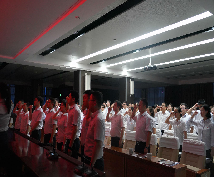 为纪念中国共产党成立98周年,继承和发扬党的光荣传统,进一步发挥党建工作的引领作用,湘江新区农商银行党委精心组织了“三个一”活动,即开展一场动员大会、重温一次入党誓言、观看一部红色影片。