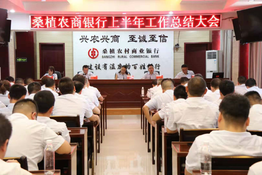 7月26日,桑植农商银行2019年度上半年工作总结会议在总行八楼会议室召开,旨在对上半年经营情况进行总结,及时奖励先进,鞭策落后,并对下半年工作早安排、早部署、早落实。该行领导班子成员、机关部室经理、各支行行长及部分业务骨干共计95人参加了会议。会议由行党委书记、董事长高红玲主持。