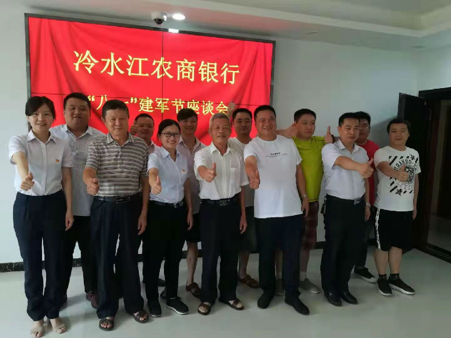8月1日,冷水江农商银行组织全行10余名退伍军人召开慰问座谈会,共庆建军佳节,该行党委委员、纪委书记、监事长朱丽萍主持参加会议。