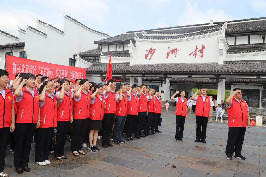 8月11日,资兴农商银行在“半条被子”故事发生地汝城县沙洲村红色经典教育基地开展“不忘初心、牢记使命”主题党日活动,缅怀革命历史,接受党性教育。总行党委和各支部党员、预备党员、入党积极分子共56人参加此次活动。