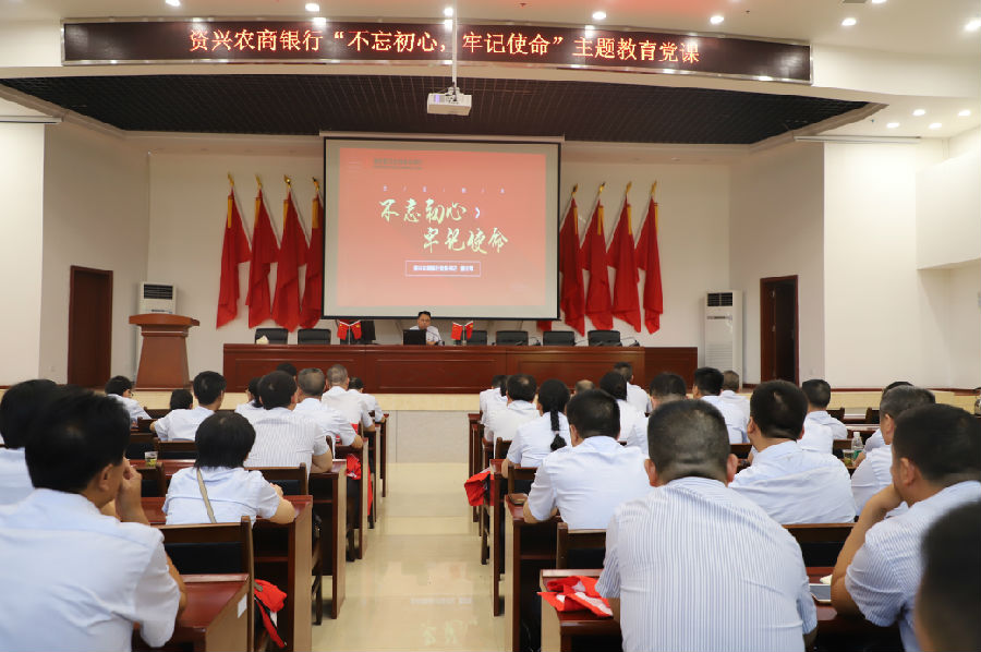 参观结束后,党委书记曹志军在大礼堂以“不忘初心,牢记使命”为主题,向全体参加活动的人员上了一堂生动又深刻的党课。他以“是什么、为什么、怎么办”为主线,深入阐释了中国共产党的初心和使命,并结合工作实际,通过一个个真实的感人故事,呈现了农信人六十余年的默默坚守与无私奉献,教育大家要铭记湖南农信服务“三农”和支农支小的初心与使命,坚持做一家有温度、有情怀、知感恩、勇担当的百姓银行。他要求全体党员要以真心真情,真学真信,悟初心、忠初心、守初心,践初心,真正把初心刻印在心中,烙印在言行,转化为动力,以永不懈怠的精神状态和一往无前的奋斗姿态,苦干实干、知重负重,为资兴农商银行的高质量发展作出新的贡献。党课中,各支部党员代表结合自己的工作实际,现场分享了学习的感悟与心得,并畅谈下一步工作规划。